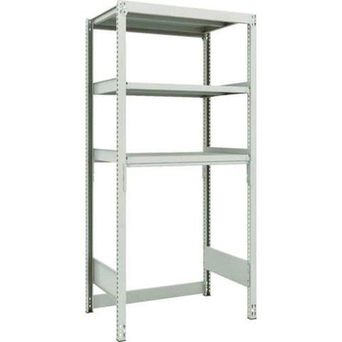 ・間口(mm):902・奥行(mm):609・高さ(mm):1807・有効間口(mm):816・色:ネオグレー・棚段数(段):3・均等積載量(kg/段):200・棚板調整ピッチ(mm):25・タイプ:単体型・組立目安:2人30分