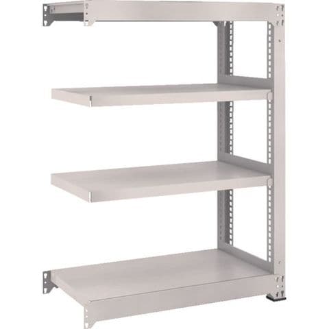 ・間口(mm):900・奥行(mm):1131・高さ(mm):1211・有効間口(mm):840・色:ネオグレー・棚段数(段):4・均等積載量(kg/段):300・最大積載量(kg/台):2500・棚板調整ピッチ(mm):25・タイプ:連結型・組立目安:2人30分