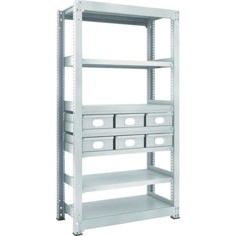 M36357B6 スチール製中量ボルトレス棚 M3型 スチール引出付 W900×D471×H1800 大×6