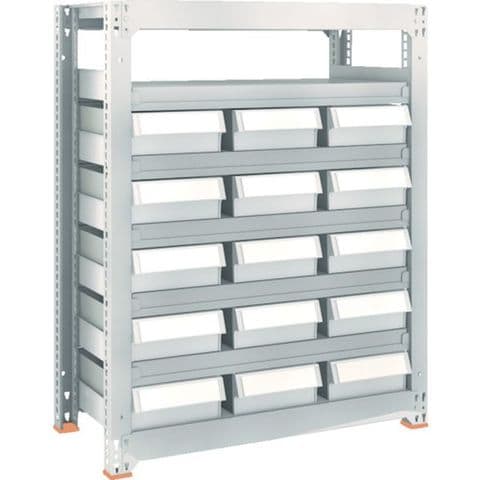 M36357F6 スチール製中量ボルトレス棚 M3型 樹脂ネオグレー引出付 W900×D471×H1800 大×6
