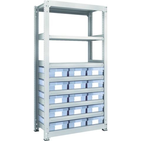 M36358D15 スチール製中量ボルトレス棚 M3型 樹脂透明引出付 W900×D471×H1800 大×15