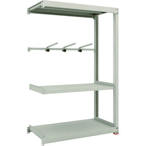 ・間口(mm):1200・奥行(mm):581・高さ(mm):1811・有効間口(mm):1140・色:ネオグレー・棚段数(段):3・均等積載量(kg/段):300・最大積載量(kg/台):2500・棚板調整ピッチ(mm):25・タイプ:連結型・組立目安:2人30分