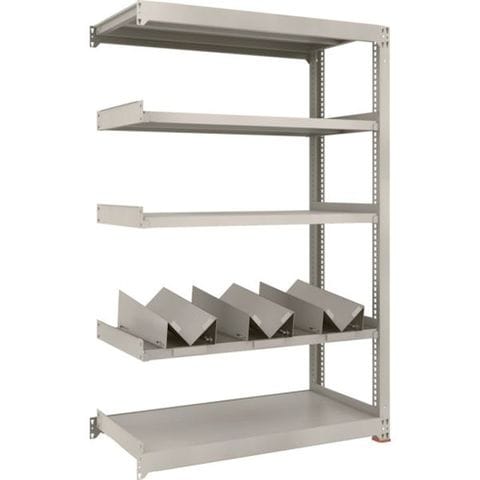 ・間口(mm):1200・奥行(mm):581・高さ(mm):1811・有効間口(mm):1440・色:ネオグレー・均等積載量(kg/段):300・最大積載量(kg/台):2500・タイプ:連結型・棚板調整ピッチ(mm):25・缶受数:3・棚段数(段):5