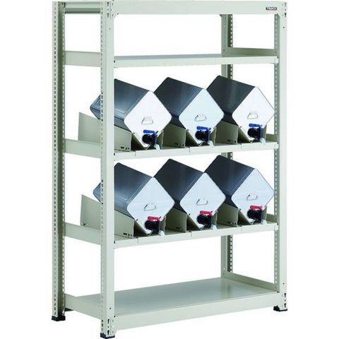 ・一斗缶やペール缶のどちらでも保管可能な棚です。・サポート台は注ぎ口が下にくるよう傾斜がついており、給油コック使用時でも最後まで使いやすく便利です。・高さ、奥行が同じであれば、増結することができます。・ボルトを1本も使用していないボルトレス構造で、分解・組み立て作業が簡単。作業時間を大幅に短縮できます。・連結する際は支柱を兼用するので、コストダウンが図れます。・樹脂ベースの使用により、床を傷つけません。・缶を持ち上げることなく小分けができるので安全、清潔にご使用いただけます。
