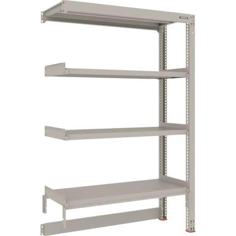 ・間口(mm):1200・奥行(mm):481・高さ(mm):1811・有効間口(mm):1160・色:ネオグレー・棚段数(段):4・均等積載量(kg/段):300・最大積載量(kg/台):900・棚板調整ピッチ(mm):25・タイプ:連結型・組立目安:2人30分