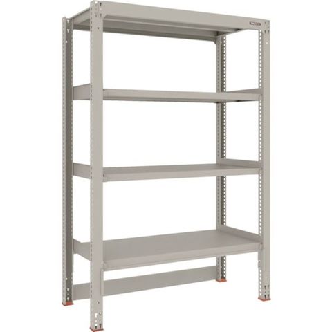 ・間口(mm):1261・奥行(mm):581・高さ(mm):1811・有効間口(mm):1160・色:ネオグレー・棚段数(段):4・均等積載量(kg/段):300・最大積載量(kg/台):900・棚板調整ピッチ(mm):25・タイプ:単体型・組立目安:2人30分