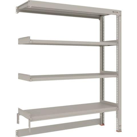 ・間口(mm):1500・奥行(mm):481・高さ(mm):1811・有効間口(mm):1460・色:ネオグレー・棚段数(段):4・均等積載量(kg/段):300・最大積載量(kg/台):900・棚板調整ピッチ(mm):25・タイプ:連結型・組立目安:2人30分