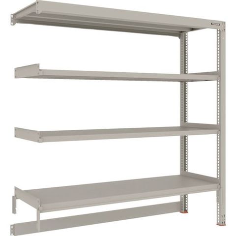 ・間口(mm):1800・奥行(mm):581・高さ(mm):1811・有効間口(mm):1760・色:ネオグレー・棚段数(段):4・均等積載量(kg/段):300・最大積載量(kg/台):900・棚板調整ピッチ(mm):25・タイプ:連結型・組立目安:2人30分