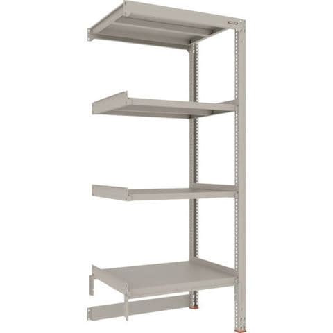 ・間口(mm):900・奥行(mm):731・高さ(mm):2185・有効間口(mm):860・色:ネオグレー・棚段数(段):4・均等積載量(kg/段):300・最大積載量(kg/台):900・棚板調整ピッチ(mm):25・タイプ:連結型・組立目安:2人30分