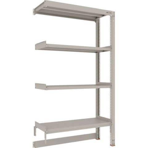 ・間口(mm):1200・奥行(mm):481・高さ(mm):2185・有効間口(mm):1160・色:ネオグレー・棚段数(段):4・均等積載量(kg/段):300・最大積載量(kg/台):900・棚板調整ピッチ(mm):25・タイプ:連結型・組立目安:2人30分