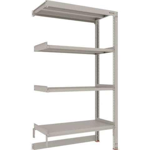 ・間口(mm):1200・奥行(mm):581・高さ(mm):2185・有効間口(mm):1160・色:ネオグレー・棚段数(段):4・均等積載量(kg/段):300・最大積載量(kg/台):900・棚板調整ピッチ(mm):25・タイプ:連結型・組立目安:2人30分
