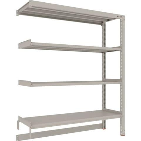 ・間口(mm):1800・奥行(mm):581・高さ(mm):2185・有効間口(mm):1760・色:ネオグレー・棚段数(段):4・均等積載量(kg/段):300・最大積載量(kg/台):900・棚板調整ピッチ(mm):25・タイプ:連結型・組立目安:2人30分