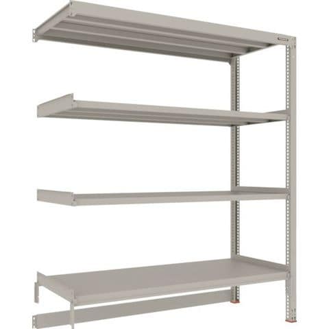 ・間口(mm):1800・奥行(mm):731・高さ(mm):2185・有効間口(mm):1760・色:ネオグレー・棚段数(段):4・均等積載量(kg/段):300・最大積載量(kg/台):900・棚板調整ピッチ(mm):25・タイプ:連結型・組立目安:2人30分