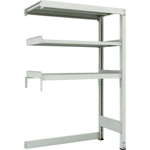 ・間口(mm):1200・奥行(mm):581・高さ(mm):1811・有効間口(mm):1140・色:ネオグレー・棚段数(段):3・均等積載量(kg/段):300・最大積載量(kg/台):900・棚板調整ピッチ(mm):25・タイプ:連結型・組立目安:2人30分