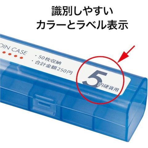 ・色:青・硬貨収納枚数:5円 50枚・幅(mm):84・奥行(mm):25・高さ(mm):25