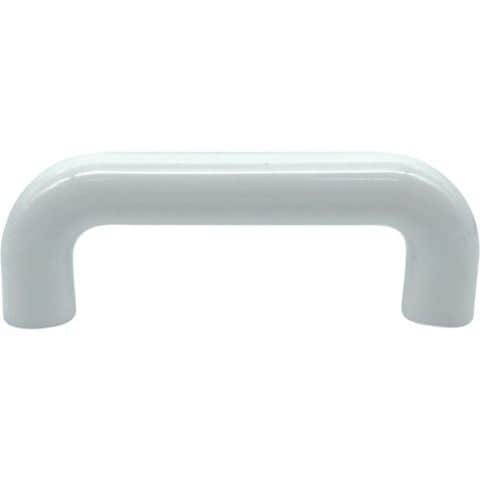 丸棒取手 PS樹脂 白 全長80mm 全高28mm ピッチ68mm 下穴深さ15(ねじ4×30 2本付)
