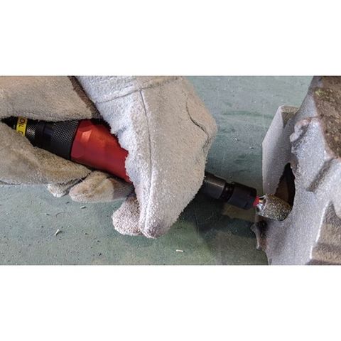 ・結晶性が高く脱粒しにくい合成ダイヤモンドを使用しているため、耐久性に優れています。・砂噛みも一発除去できる研削力があります。・一般砥粒(アルミナ)と比べ約3倍程硬いダイヤモンドが、脱粒せず絶えず表面に出ているので、鋳物砂が溶け込んだ「砂噛み」「焼付き」も驚くほど容易に研削が可能です。・従来の砥石のように力を入れて作業する必要がないため、疲労感も少なく作業性がアップします。・極めて硬い物質であるダイヤモンドを独自の電着技術で強固に固定しているため、従来の軸付砥石と比較して圧倒的な耐久性を実現しています。・変形摩耗せず、刃こぼれしません。・形状が変わらないため、隅のR部も綺麗に研削できます。