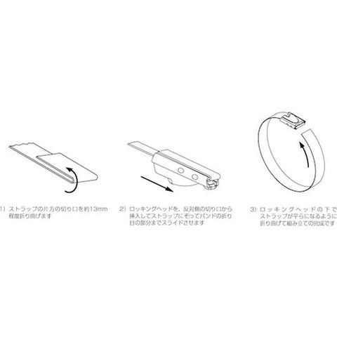 ・強い強度と優れた耐久性で過酷な環境下でのケーブル・電線・電柱の結束に適しています。・必要な長さでカットできるため在庫および管理業務の軽減に貢献します。・専用ヘッドとともに使用します。・独自のロッキングヘッドデザインによって強いループ引張強度を実現し、強度のバラつきも少なくなっています。・締めた後の外観もきれいに仕上げられます。