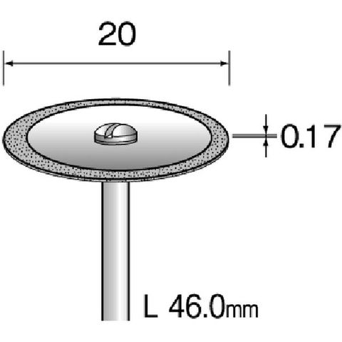 ・粒度(#):320・刃径(mm):20・刃長(mm):0.17・軸径(mm):3・全長(mm):46・最高使用回転数(rpm):15000・砥粒:ダイヤモンド・刃厚(mm):0.17