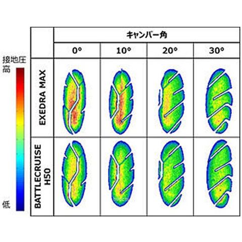 大きく均一な接地特性により、バンク角によらず高い操縦安定性を実現。