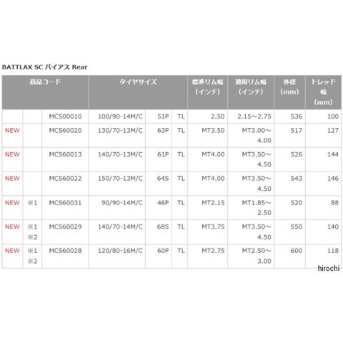 BATTLAX SCパタンのスクーター用バイアスタイヤ、サイズランナップを拡大。