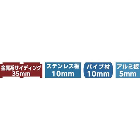 ・被削材:金属サイディング、鉄板、鋼板(25mm以下)、ステンレス板(10mm以下)、アルミ板(5mm以下)、パイプ材など。
