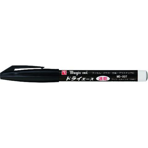 ・油性マジックよりさらに速乾です。・キャップを開放した状態でも、ペン先は24時間程度乾きません。(温度20℃、湿度65%の条件下)・非吸収面に筆記してすぐ乾き、ガラス板では3~5秒で乾くので、作業中の筆跡・インキの転写を防ぎます。・一般の油性マーカーに比べ、耐水性・塗膜強度などが劣ります。