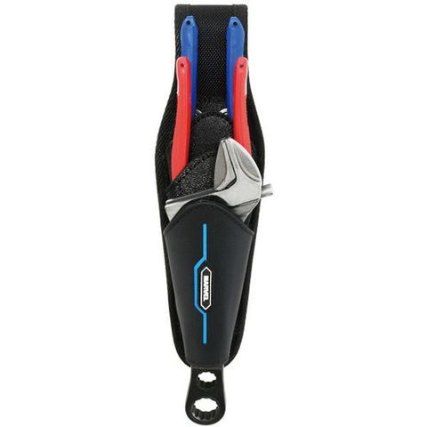 ・新縫製により差し込み口のテープによる段差が無くなり、工具の抜き差しが引っ掛かることなくスムーズです。・すべての背面に樹脂板を付けることで工具の滑りが良く、シュッと差せてサッと抜けます。・表面のターポリン生地の内側に樹脂板を縫製することで強度が増し、型崩れしにくくなってます。・ベルト通し部分にも樹脂板を入れており、重い工具を差しても安定し、丈夫です。・9インチペンチもしっかりホールドします。