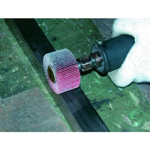 ・金属のバリ取り、サビ落とし。・平面、曲面、内面など、金属の表面研磨全般。・フラップの先端を避ける、狭い部分などの研磨に適しています。・使用工具:ストレートグラインダー。
