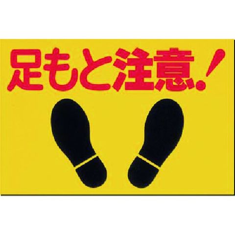 ・表示内容:足もと注意!・取付仕様:粘着シール・縦(mm):300・横(mm):450・厚さ(mm):1.2・シートサイズ:300x450