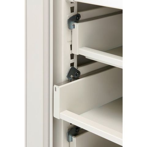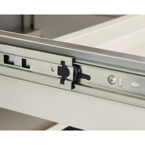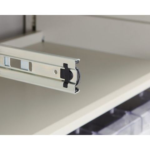 ・ロック機構により、地震の際、棚が出てきません。・レール部爪ロックを外せばスライド棚は簡単に取り外せます。