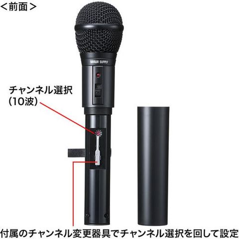 ・MM-SPAMP4用ワイヤレスマイクです。・サンワサプライ製拡声器スピーカー:MM-SPAMP4に同梱されているワイヤレスマイク(単品)です。・特定小電力無線局ラジオマイク(800MHz帯)規格に適合しています。・B型帯域を使用しており10波の中から1波を選択して利用できます。・発言者の声色をできるだけ忠実に引き出すワイヤレスダイナミックマイクです。