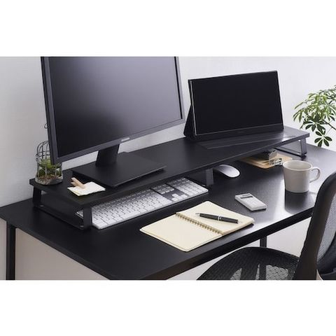・シンプルなデザインでどんなデスクにも合うモニター台です。・モニター台を使って目線を上げることで姿勢が改善され、首や肩、腰への負担が軽減されます。・キーボードやマウスを収納し、作業スペースを広く使うことができます。・背板がないので、配線作業も簡単です。・お手入れがしやすいフラットタイプです。