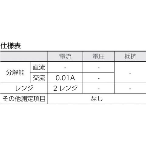 ・検波方式:平均値整流(MEAN)・最大表示:1999カウント・最大測定導体径:22mm・幅×奥行×高さ:54×21×170mm・電源:ボタン型アルカリ電池(LR44)×2個(付属)又は(SR44)×2個(付属)・ソフトケース、取扱説明書付