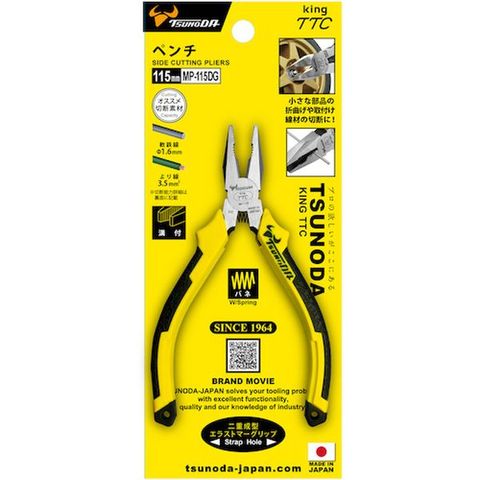 MP115DG (株)ツノダ TTC ペンチ 115mm 成型グリップ バネ付き