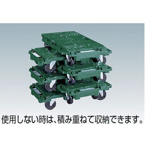 ・均等荷重(kg):150・騒音値(dB):69・色:グリーン・長さ(mm):680・幅(mm):390・高さ(mm):148・全高(mm):148・キャスター径(mm):100・タイプ:キャリー
