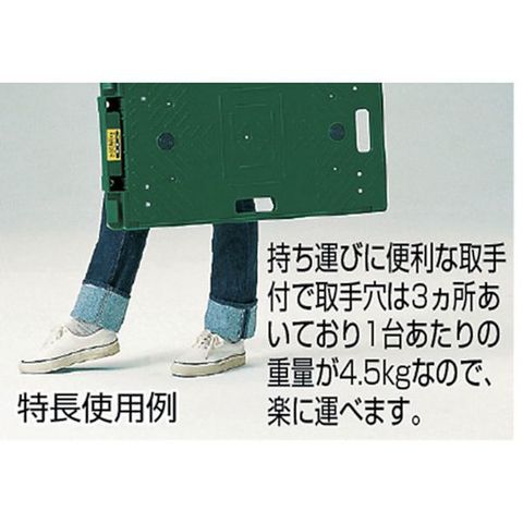 ・持ち運びに便利な取手付で取手穴は3ヵ所あいており1台あたりの重量が約4kgなので、楽に運べます。・耐油性に優れ静かな走行音のウレタンキャスター仕様です。