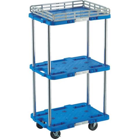 MPB502JSB 樹脂製台車 ルートバン 2段式 370X500 4輪自在ストッパー付 青