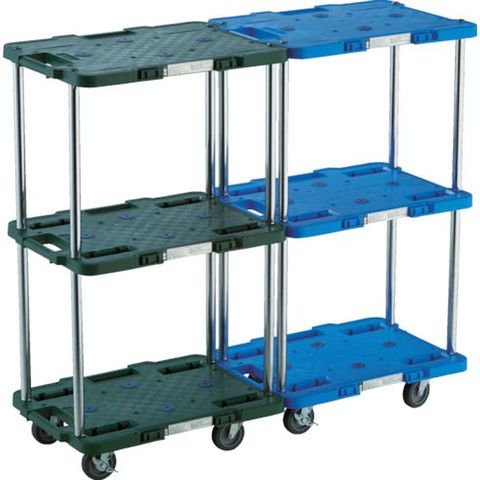 MPB503JSB 樹脂製台車 ルートバン 3段式 370X500 4輪自在ストッパー付 青