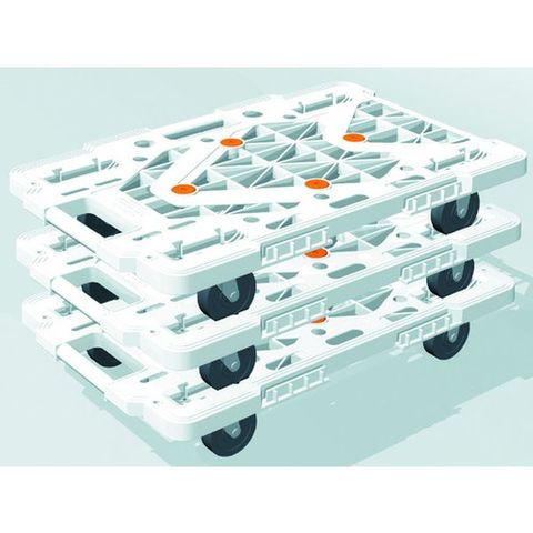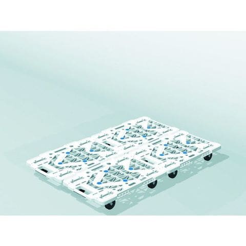 ・メッシュ構造の採用で、従来品よりさらに軽量で移動が簡単です。・縦・横方向に連結が可能です。(縦連結はオール自在キャスター仕様、オール自在ストッパー付キャスター仕様のみ)・スタッキング可能です。・荷台は堅牢なメッシュリブ構造です。・薬品や溶剤にも侵されにくく耐久性に優れています。・台上に滑り止め用ゴムが4ヵ所ついています。・エラストマー樹脂車輪の採用でタイヤ痕がつくのを軽減します。・ルートバンMP-600用コーナーストッパーの取り付けが可能です。(MPK-600シリーズ)
