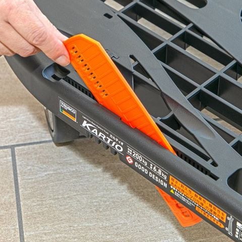 ・荷台:再生ポリプロピレン(PP)再生材100%・ハンドル:アルミ・キャスター金具:スチール・車輪:エラストマー樹脂