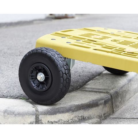・完成品・ノーパンクタイヤ・自在キャスター、固定キャスター各2個・折りたたみハンドルタイプ・取り替えキャスター:TKT250NP、TKT175NP・滑り止めゴム:天板中央に4個、キャスター取り付けねじ部に小16個・2014年度グッドデザイン賞受賞