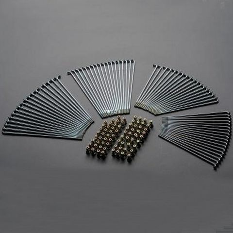 純正と同じくユニクロメッキ仕上げとした前後リム用スポークセット。