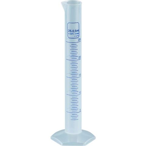 ・容量(ml):25・目盛間隔(ml):0.5(開始8)・外径(mm):20・高さ(mm):169・口内径(mm):18・台座径(mm):48