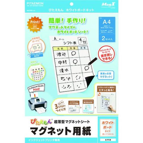 MSPWHA4 マグネットシート ぴたえもん ホワイトボードキット(インクジェットプリンター用) 規格A4