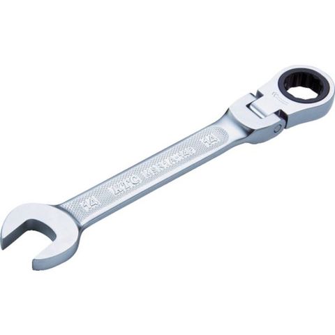 ・ラチェットめがね部の振れ角は片側約90°あり、作業性に優れています。・送り角度5°(8mmは除く)で、狭い場所でのスムーズな連続作業ができます。・ラチェットめがね部は本締めが可能です。