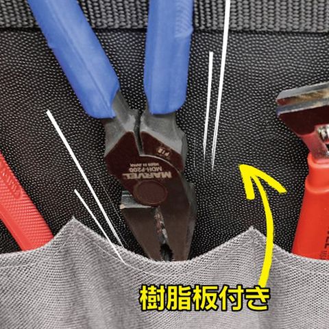 ・上フタ付でほこり等が入らず、中身をしっかり守ります。・中面ポケット部は樹脂板付で、工具の差し抜きがしやすくなってます。・ポケットが内側に14ポケット、外側に6ポケット、合計20ポケットついており、たっぷり収納可能です。・内側のポケットの内、4ポケットはスプレー缶を差すことも可能なサイズです。・スプレー缶はフタをしたまま出し入れしやすく、しっかりとホールドもされます。・背面ポケットはA4ファイルが入るサイズです。・ショルダーベルトが付属されており、肩から掛けることも可能です。・グレーとブラックのシックな組み合わせになってます。