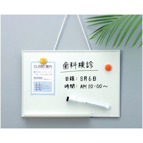 ・プラスチックフレームの軽量ホワイトボードです。・縦でも横でも使えます。・裏面に吊り下げ金具を付けて壁面に吊るせます。