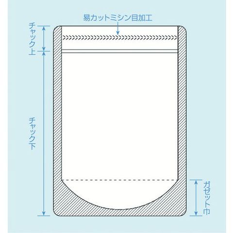 ・便利なチャック付自立容器として高いディスプレイ効果を発揮します。・ハの字ミシン目加工によりノッチ部分から手で簡単に開封できます。・4つの角は、全て完全Rカットタイプです。・開封後も切り口はRになります。