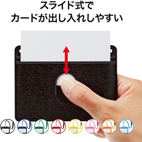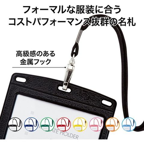・高級感のあるレザー調吊り下げ名札です。・名刺などのストックができる2ポケットタイプです。・ストラップはワンタッチで脱着可能です。・ストラップを強く引っ張ると安全装置が働き、事故を防止します。